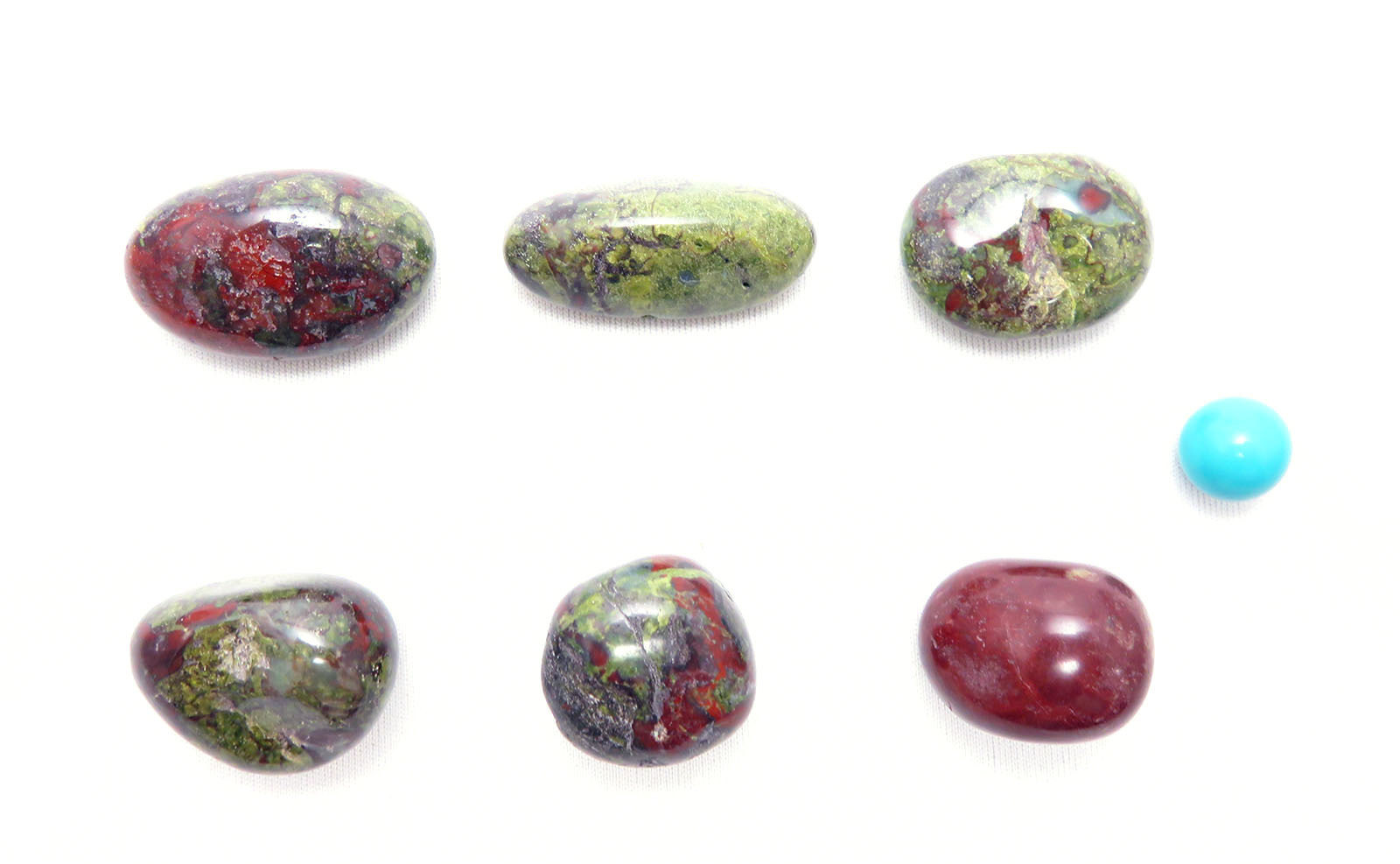 淡いグリーンに血のようなレッドが印象的なドラゴンブラッドジャスパーのタンブルです。