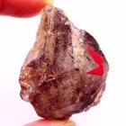 写真では上手く撮れていないかもしれませんが、赤い三角の矢印方向にペンライトを当てた時にピンクの輝きを確認しております。
